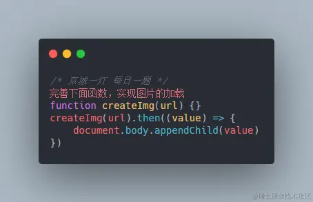 createImg之后得到一个 Promise,能够使用其 then 方法 - then 得到的参数应该是一个 html 节点