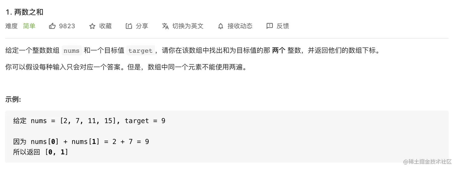 这种算法的时间复杂度是O(n^2)的, 后面可以用map把时间复杂度优化成O(n)