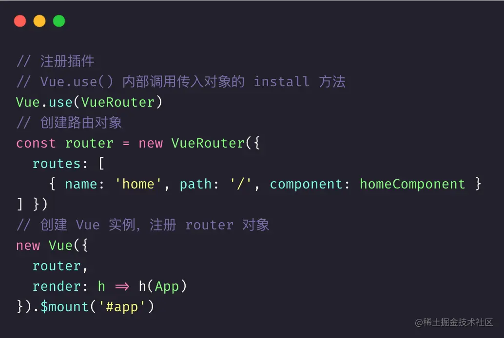 - 注册路由插件: Vue.use 用来注册插件,传入函数的话就直接调用,传入对象就会调用对象的 install 方法