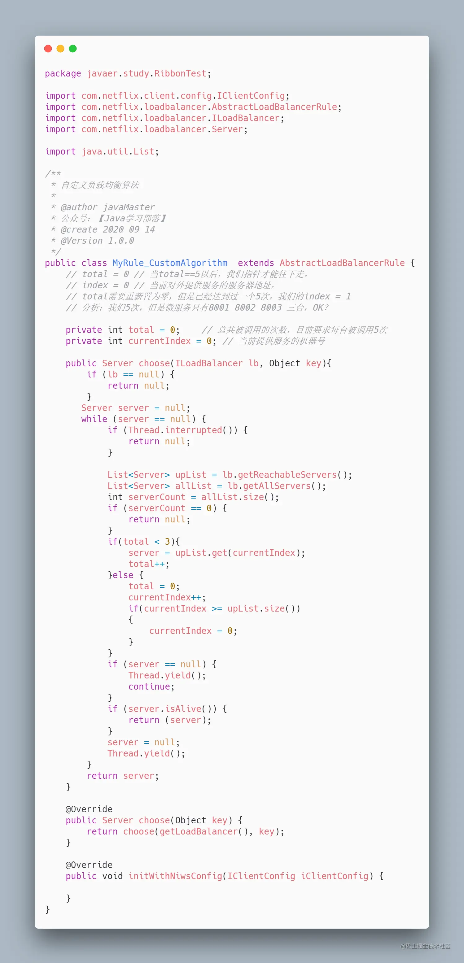接下自定义一个负载均衡策略算法 MyRule_CustomAlgorithm。