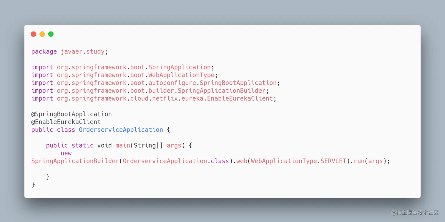 因为我们要实现通过Ribbon + RestTemplate通过指定的负载均衡的策略去选取某一个服务进行调用,所以我们先来创建一个订单服务OrderService。