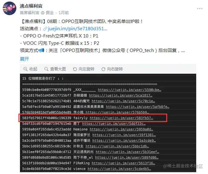 周末的时候参加了掘金的web端测试,没想到最后拿了两个奖,掘金的几个奖项都拿到了,新T恤、卫衣、鼠标垫、保温杯、搪瓷杯这些都有了