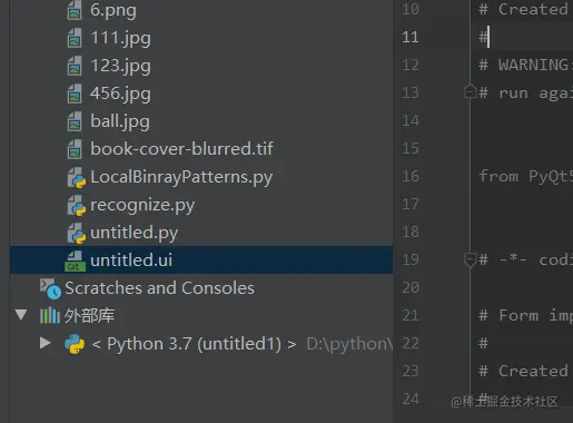 之后另存为到工程目录下,并更改为名称.ui,之后就可以在pycharm中看到了