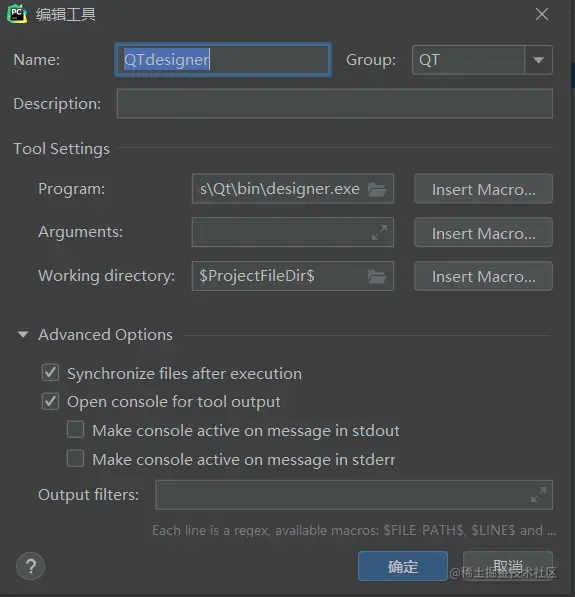 打开PyCharm,打开File—>Settings—>External Tools,点击加号来添加自己的工具,做如下配置: