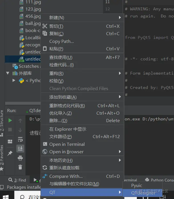 右键刚才生成的.ui程序,点击pyuic