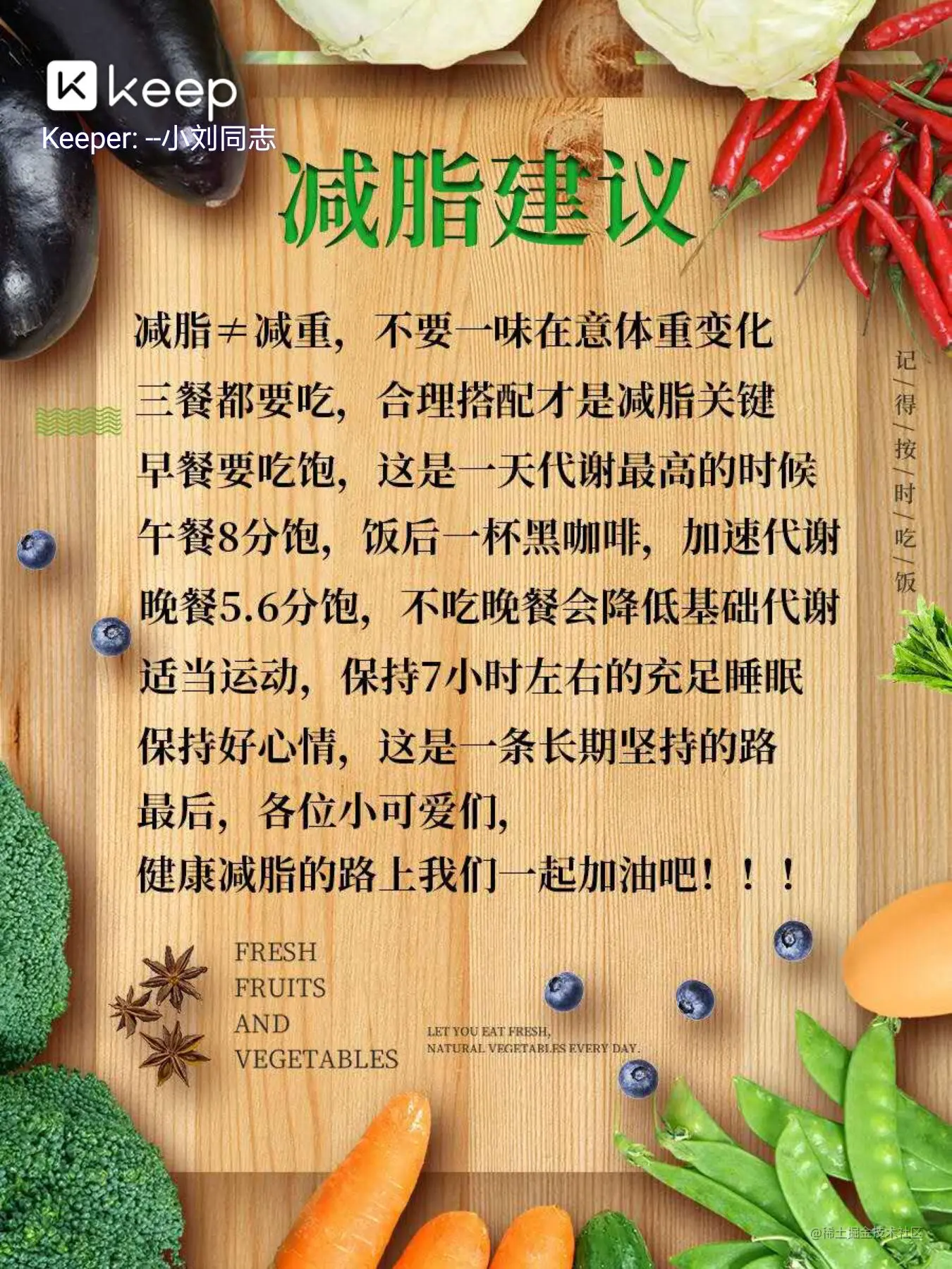 - 晚餐换为水果:苹果、香蕉等(水果好贵)