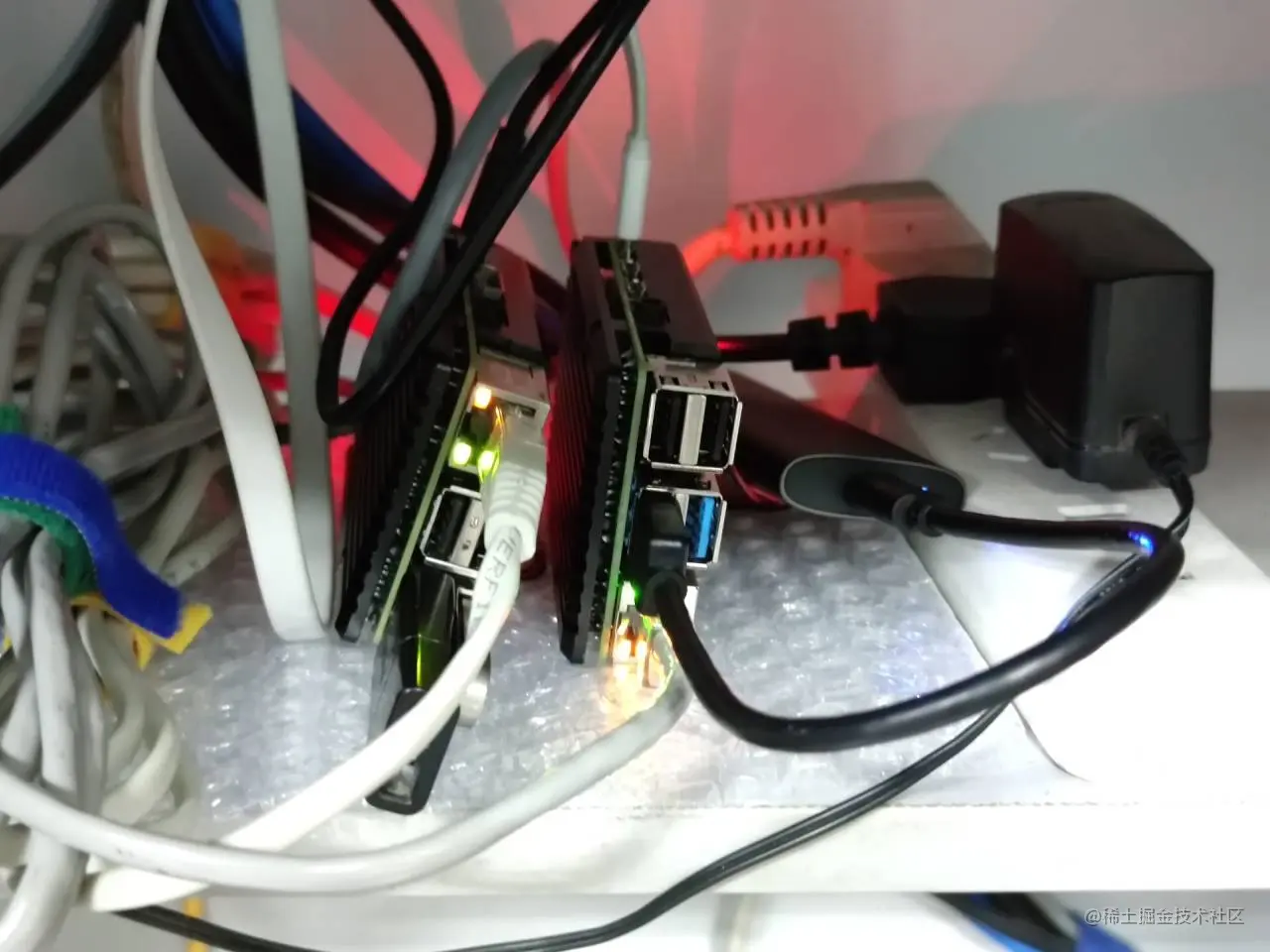 我的树莓派平日里就丢在桌子的下面,和交换机接在一起。