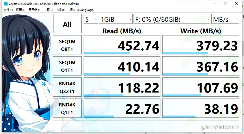 综合对比,我选择从淘宝购买了64G的固态和硬盘盒,最后到手一看还挺有质感,测速数据如下: