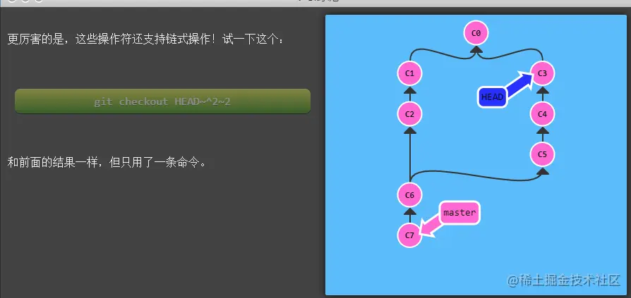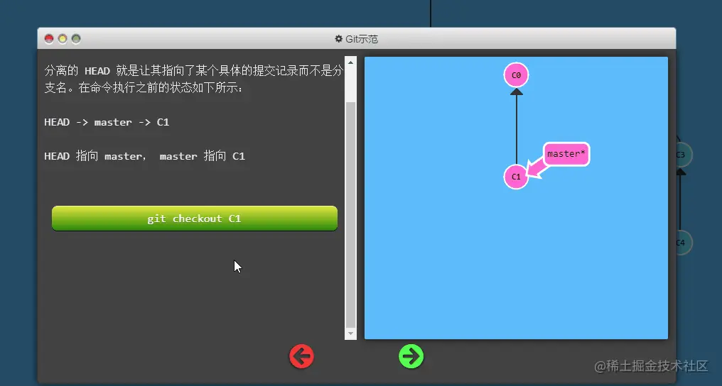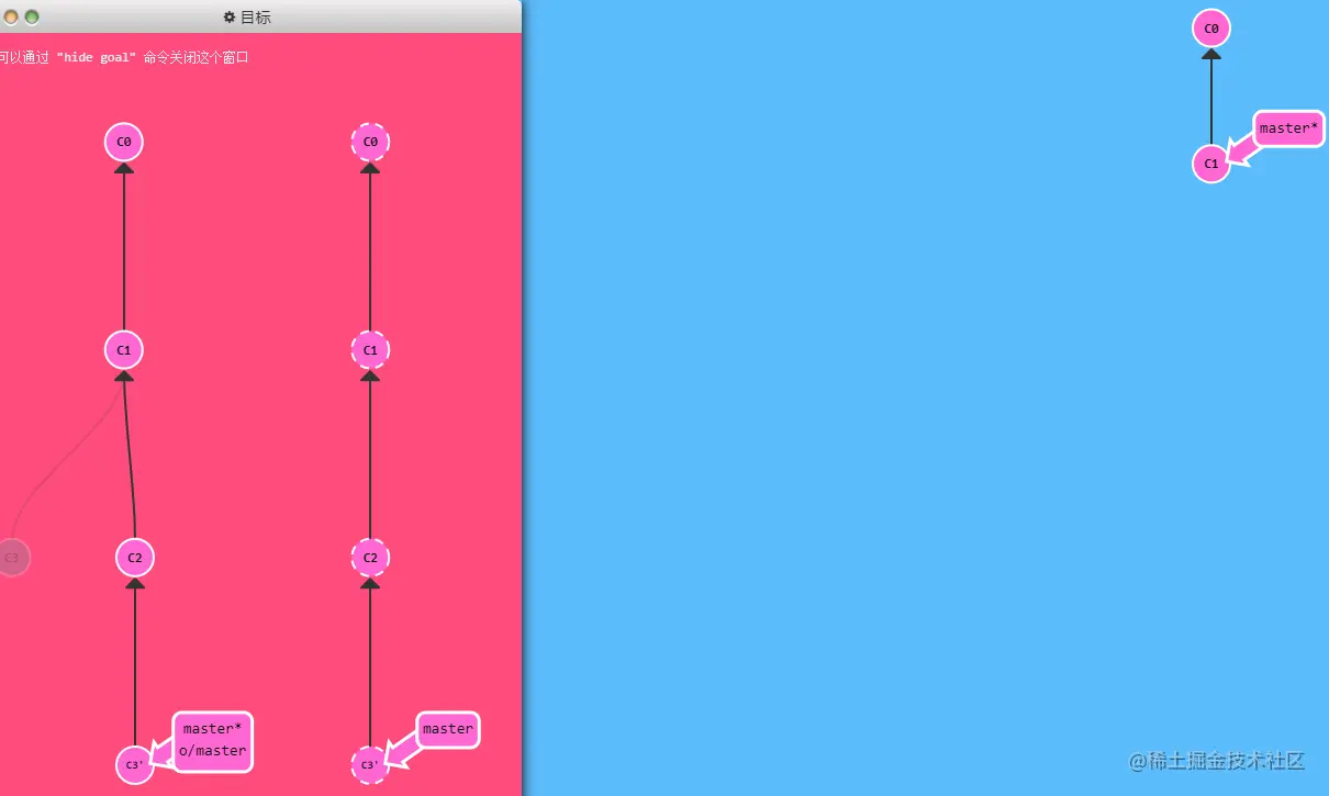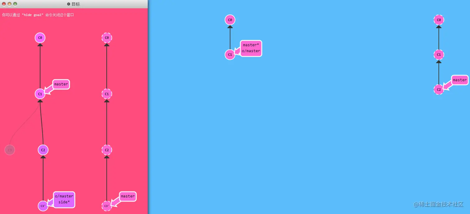 思路:在 master 分支上做一次提交;然后检出 o/master,再做一提交。这有助于你理解远程分支的不同,他们的更新只是反映了远程的状态。
