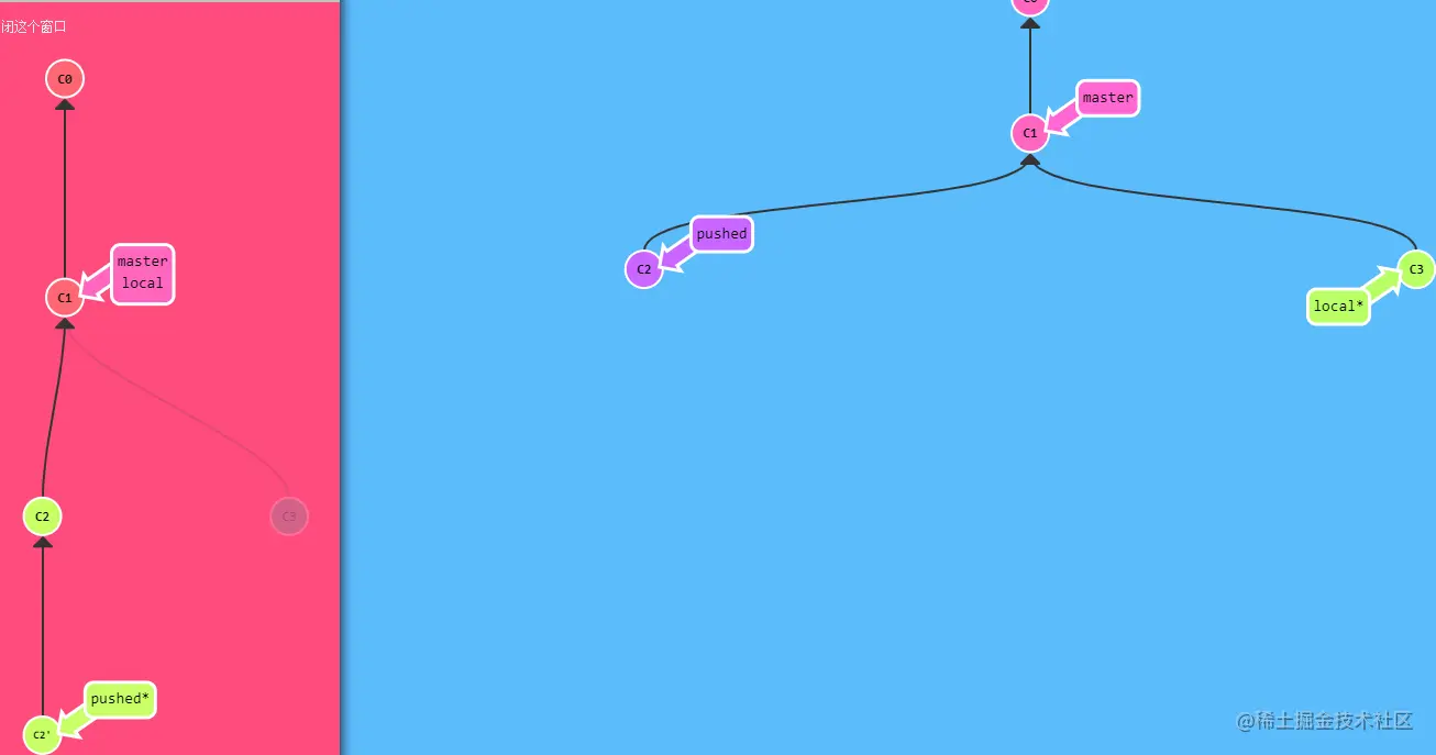 记住 pushed 是远程分支,local 是本地分支 —— 这么说你应该知道用分别哪种方法了吧?