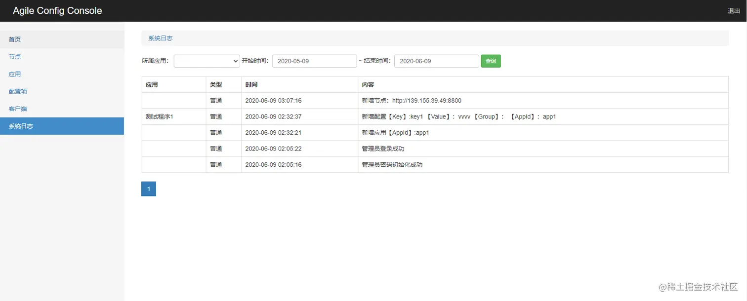 系统日志记录了AgileConfig生产中的一些关键信息。