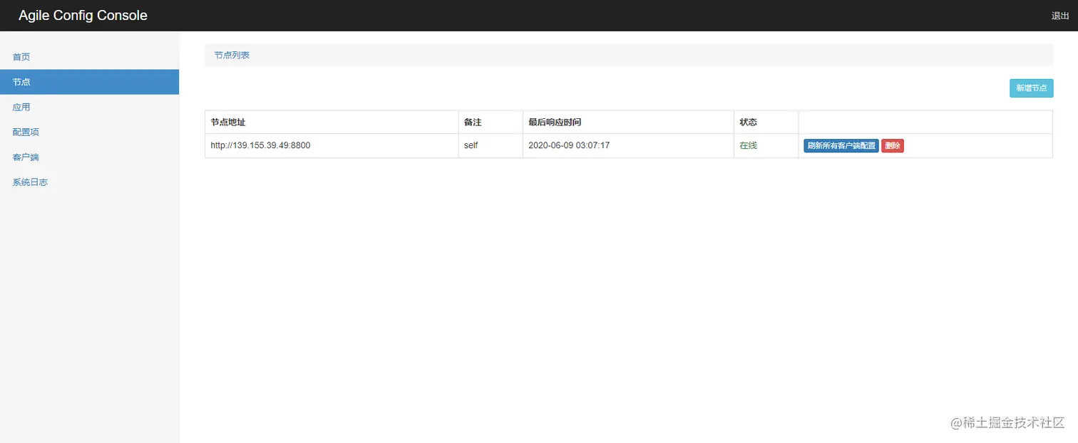 AgileConfig支持多节点部署,所有的节点都是平行的。为了简化部署,AgileConfig并没有单独的控制台程序,请直接使用任意一个节点作为控制台。当环境变量adminConsole=true时,该节点同时兼备数据节点跟控制台功能。为了控制台能够管理节点,所以需要在控制台配置节点的信息。