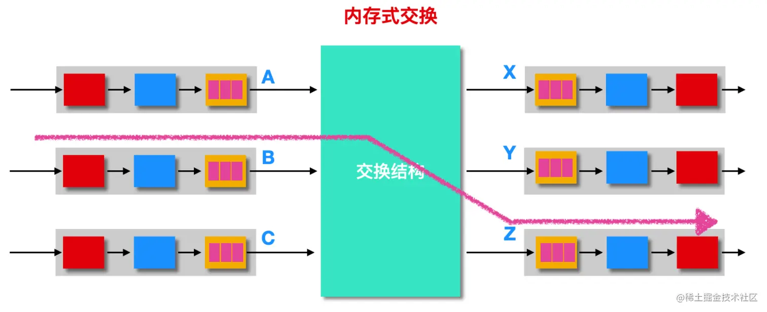 交换结构是路由器的核心功能,通过交换功能把分组从输入端口转发至输出端口,这就是交换结构的主要功能。交换结构有多种形式,主要分为 通过内存交换、通过总线交换、通过互联网络进行交换,下面我们分开来探讨一下。