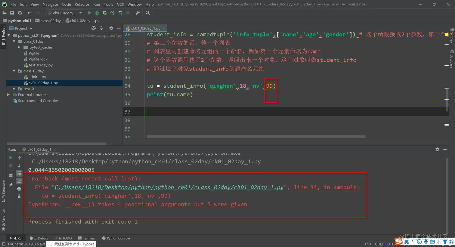 接下来,要创建命名元组的时候,元素和它一样多,名字和对应的元素的值是一一对应的,不能多,不能少。