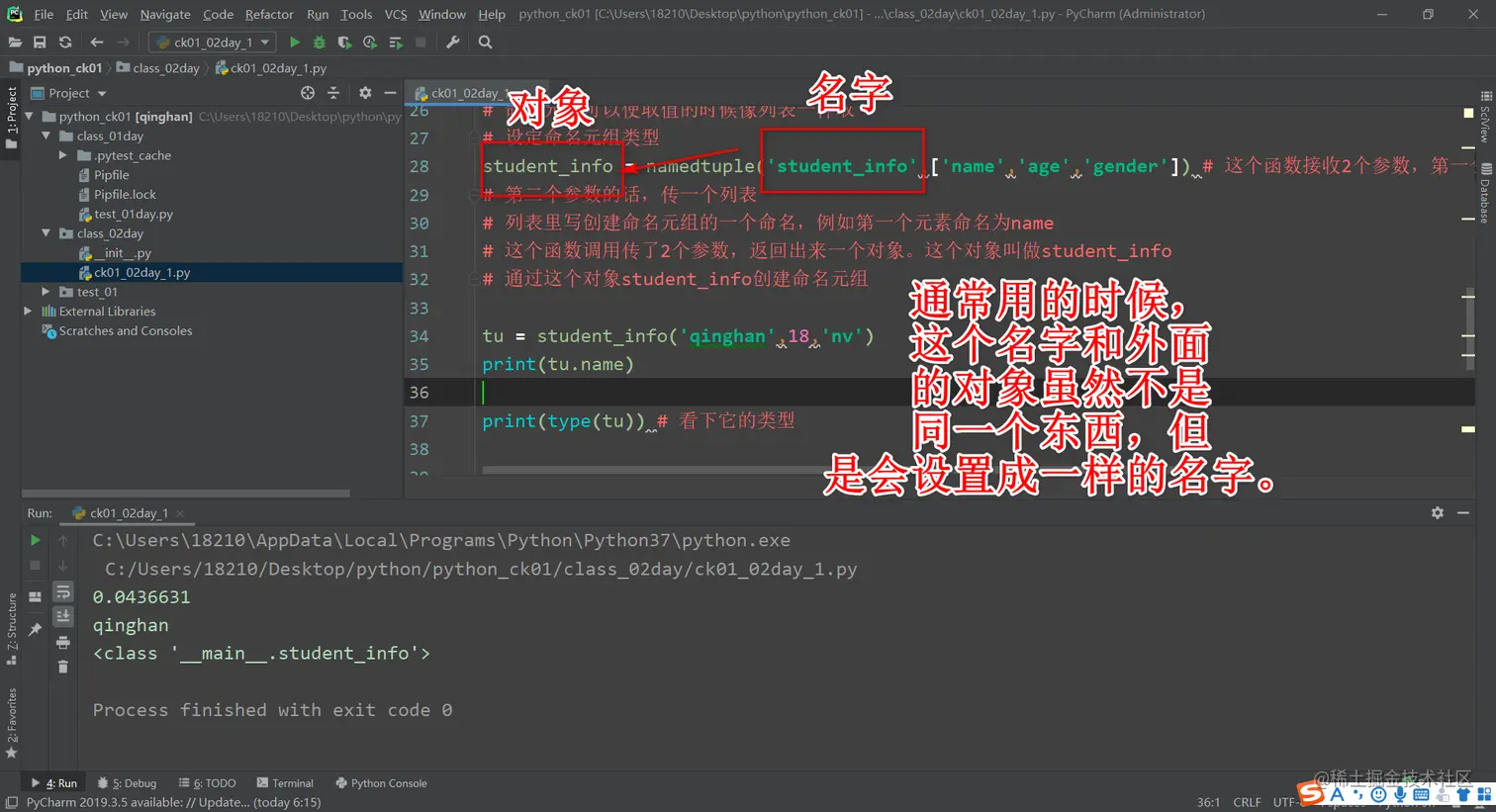 通过student_info这个对象传入对应的元组,定义元组的时候就通过这个对象把元素写进去,返回的就是命名元组。