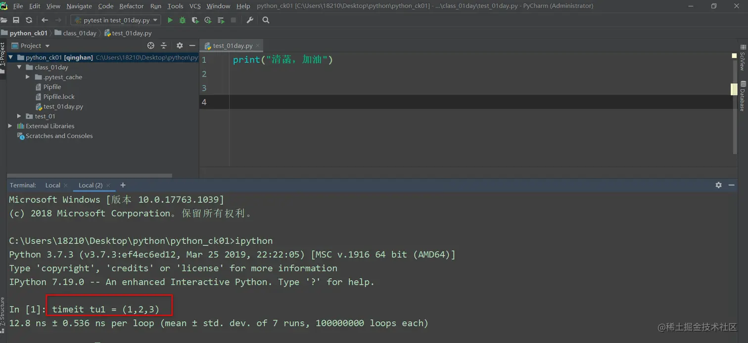 计算创建元组和列表所需的时间:ipython 中使用timeit这个命令。