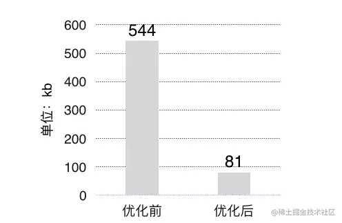 以微信小程序为例,在最极端的情况下体积优化率达 85% 以上: