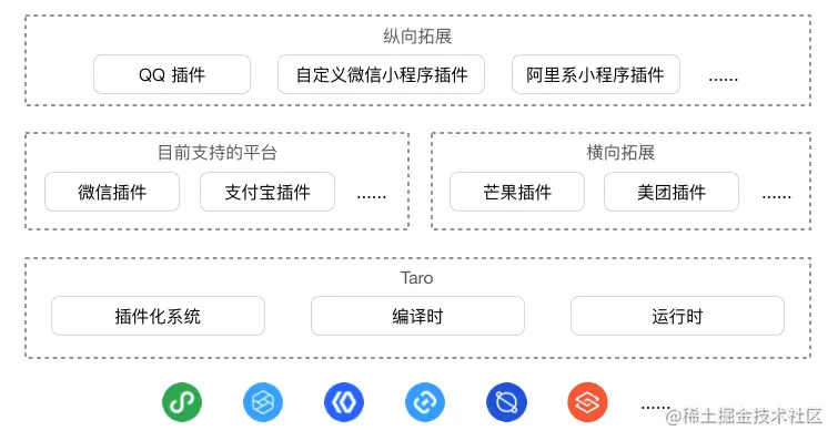 为此我们萌生了打造一个开放式框架的想法。目标是可以通过插件的形式扩展 Taro 的端平台支持能力: