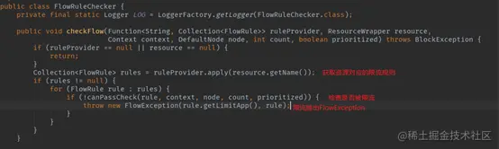 如果被限流,则抛出限流异常FlowException。FlowException继承自BlockException。