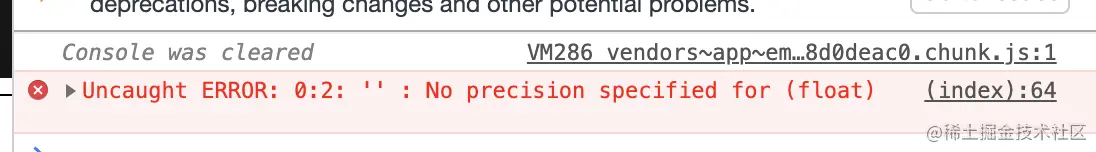 其中片元着色器中的 float 类型没有默认精度,因此,如果在片元着色器中显示声明了 float 类型变量,又没有定义精度值,则通过捕获异常,可以看到如下报错信息: