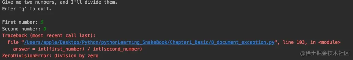 - Python使用称为异常的特殊对象来管理程序执行期间发生的错误。每当发生让Python不知所措的错误时,它都会创建一个异常对象。如果你编写了处理该异常的代码,程序将继续运行;如果未对异常进行处理,程序将停止并显示