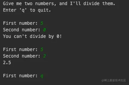 try-except代码处理的。try-except代码块让Python执行指定的操作,同时告诉Python发生异常时怎么办。使用try-except代码块时,即便出现异常,程序也将继续运行:显示你编写的友好的错误消息,而不是令用户迷惑的traceback
