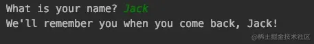 print(f"We'll remember you when you come back, {username}!")