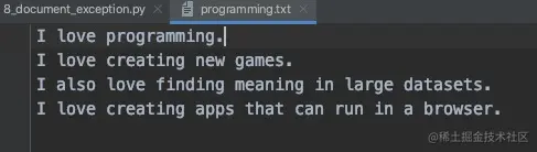 - 如果要给文件添加内容,而不是覆盖原有的内容,可以以附加模式打开文件。以附加模式打开文件时,Python不会在返回文件对象前清空文件的内容,而是将写入文件的行添加到文件末尾。如果指定的文件不存在,Python将为你创建一个空文件