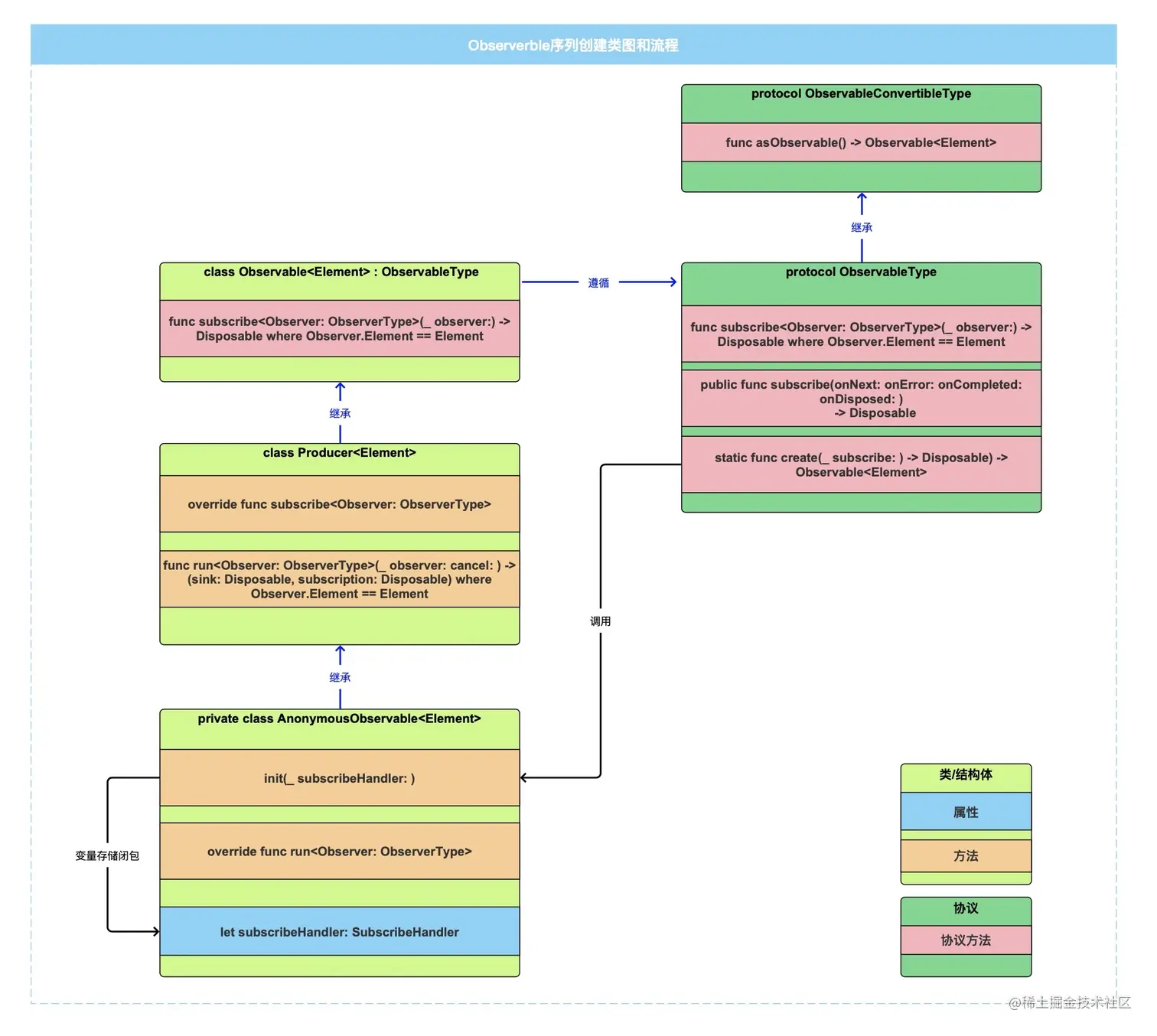 AnonymousObservable是一个内部类, 它有一个subscribeHandler属性,存储我们刚刚创建的闭包,也就是红框中的代码。