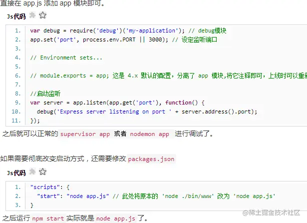 - 9.1 安装supervisor apt-get install supervisor `但是Express 4.x 默认将启动模块分离到了./bin/www中,直接使用 supervisor 无法正常监控应用,使得开发过程中的调试非常不方便。 解决方法参考zy-email1991.iteye.com/blog/219593…