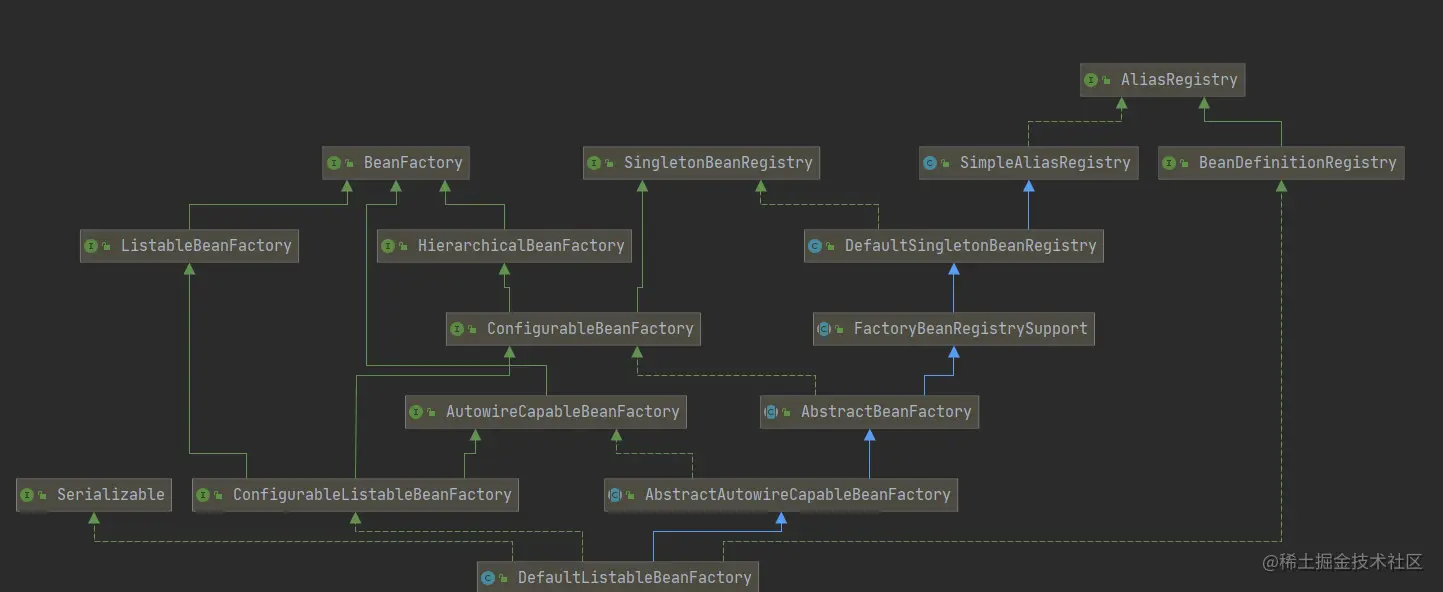 sigeletonObjects和earlySingletonObjects以及singletonFacotries在DefaultSingletonBeanRegistry中,可以看到,AbstractBeanFacotry继承了DefaultSingletonBeanRegistry。