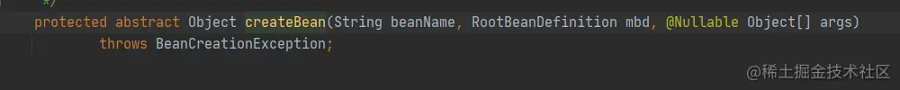createBeanInstance中的细节有兴趣,可以访问这位大牛的链接 blog.csdn.net/v123411739/… 笔者笔力有限..实在跟不动了。那么在createBeanInstance方法执行之后,会调动addSingletonFactory(beanName, () -> getEarlyBeanReference(beanName, mbd, bean));然后会调用一次getSinglton(这就是笔者前文提到的,DefaultSingletonBeanRegistry中的另一个getSingleton方法)中调用的,那么本着打破砂锅问到底的态度,我们自然要跟踪一下这个方法