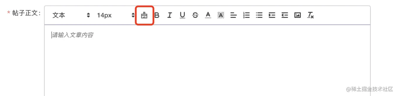 先自定义一个格式刷的icon。这里的icon采用的是iconfont的unicode引用,支持按字体的方式去动态调整图标大小,颜色等等。可以实现选中高亮的效果,与原来的工具栏交互保持一致。