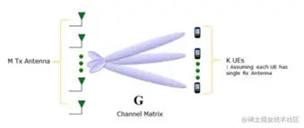信道矩阵可以表示如下。在TDD中,假设信道互易性成立。如果您有上行链路的信道矩阵,您可以通过转置它来获得下行链路信道模型,反之亦然。