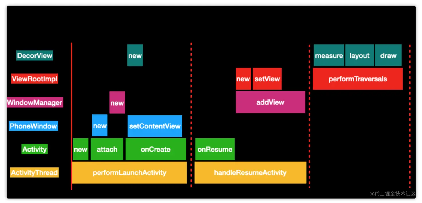 - performLaunchActivity创建了Activity,执行Activity初始化,这个过程创建了一些对象,包括PhoneWindow,PhoneWindowManager等,然后会创建出DecorView,执行onCreate函数等