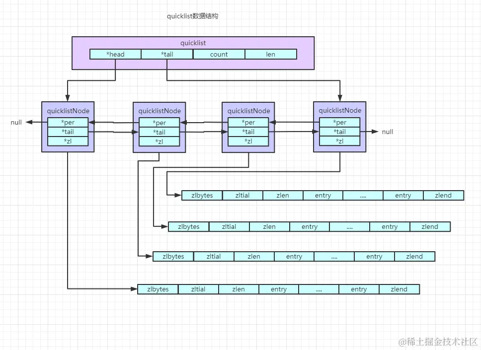 quicklist是一种对时间和空间同时妥协的设计方案。双向链表,存放相邻节点的的地址,空间不连续,内存花销比较大,对内存精打细算的redis显然不适合这种方案。压缩列表,存放节点的长度,占用内存跟小,一段连续的存储空间,新增节点内存花销小,但是修改会重新分配内存,当链表很长时,重新分配内存相当不划算。