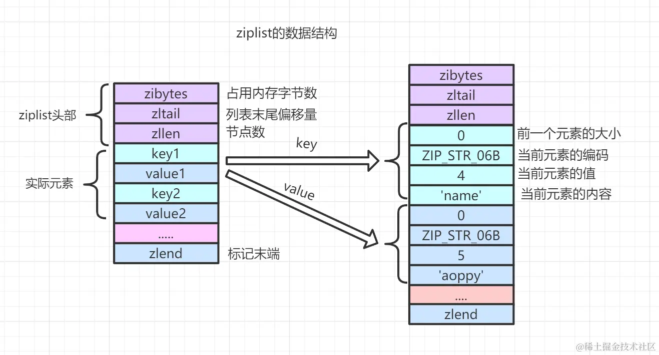 两种数据结构:ziplist、hashtable