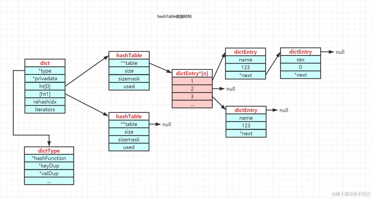 hashtable:数组+链表的数据结构,链表用来处理hash碰撞的问题。