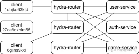 因此可以将消息路由到客户端和服务,无论它们连接到哪个 hydra-router。