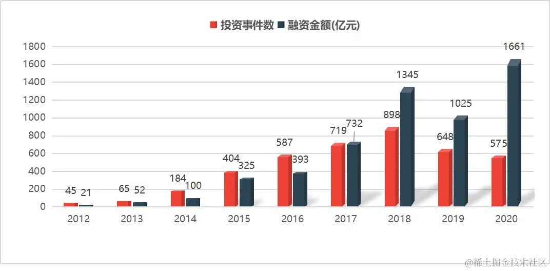 2020年的投资事件数与2016年相当,但总体的融资金额却相差了四倍之余。