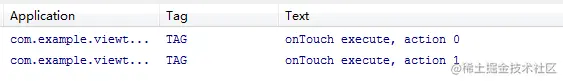 onTouch 方法里能做的事情比 onClick 要多一些,比如判断手指按下、抬起、移动等事件。那么如果我两个事件都注册了,哪一个会先执行呢?我们来试一下就知道了,运行程序点击按钮,打印结果如下: