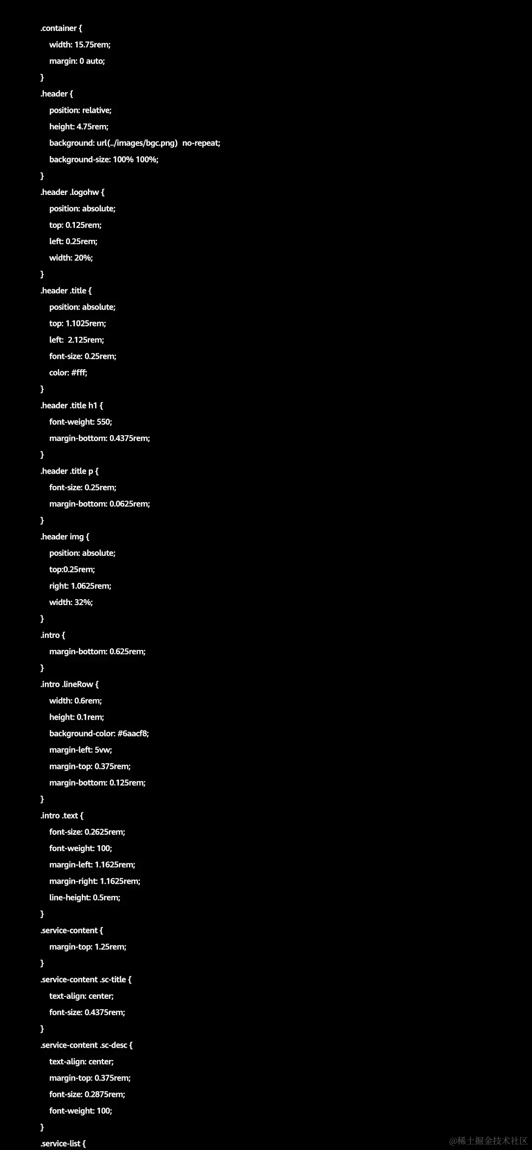 flexible.js文件代码,此文件用来帮助落地页适配各种分辨率的屏幕。 main.css和index.css文件代码,包含网站的设计样式,例如长度、宽度等。 main.css文件代码(见下图)