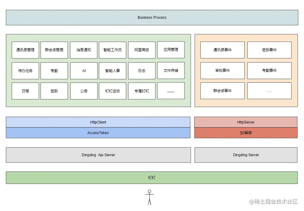 我们将打造这样一款 sdk : 介于业务逻辑 和 钉钉 之间,将业务的指令发送到钉钉,将钉钉的响应透传给业务