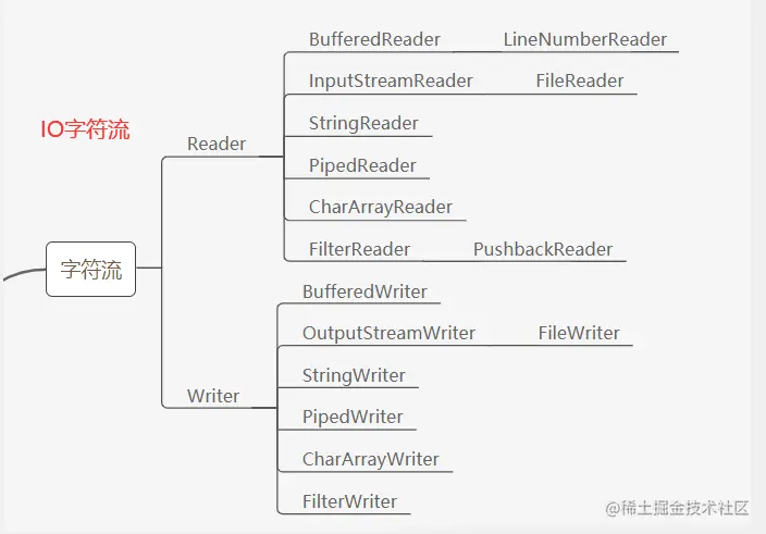 字符流分为输入字符流(Writer)和输出字符流(Reader),这两种字符流及其子类字符流都有自己专门的功能。在编码中我们常用的输出字符流有FileWriter、PrintWriter等,而常用的输入字符流有StringReader、FileReader、BufferedReader和InputStreamReader等等。Writer是用于写入字符流的抽象类。它的子类必须实现的唯一方法是write(char [],int,int),flush()和close()。 而Reader是用于读取字符流的抽象类。它的子类必须实现的唯一方法是read(char [],int,int)和close()。我们在使用Writer和Reader的过程中,可以通过继承的方式实现,同时我们也可以在继承了Writer或Reader的子类中将重写这里定义父类中已有的一些方法,来实现我们想要的功能。