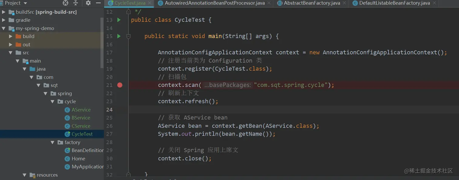 当你觉得自己很疲惫的时候,别人也很疲惫,你没有理由不逼自己一把!这次说一下Spring中的循环依赖,纯手打+代码调试!及时总结。不然又忘记了!