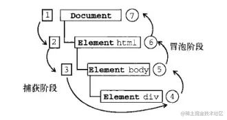 DOM2Events规范规定事件流分为3个阶段:事件捕获、到达目标和事件冒泡。事件捕获最先发生,为提前拦截事件提供了可能。然后,实际的目标元素接收到事件。最后一个阶段是冒泡,最迟要在这个阶段响应事件。