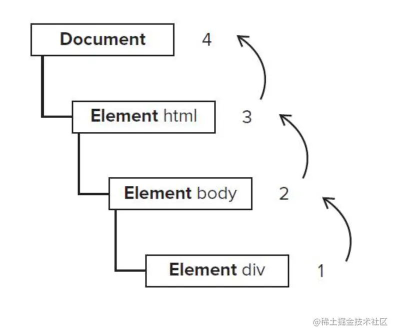 没有找到红宝书的配图,不过就是上面的顺序反过来,所有的浏览器都是从window对象开始事件捕获,DOM2规定从document开始。