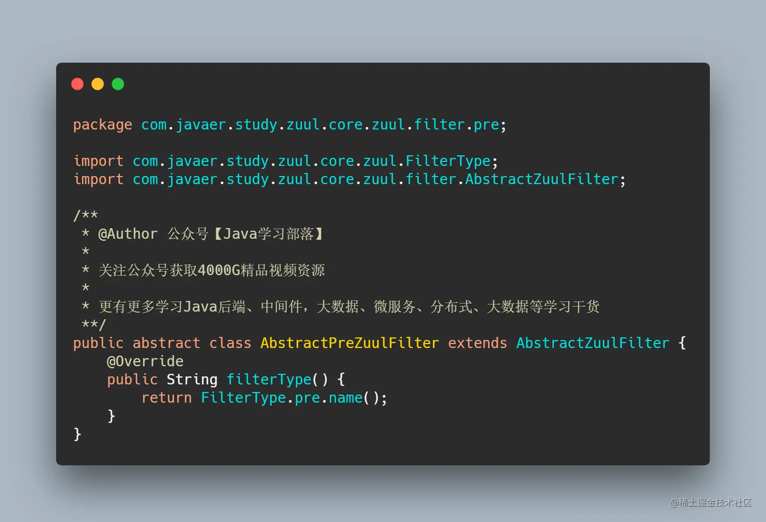 2.定义preFilter的抽象类,继承AbstractZuulFilter。指定过滤器类型为pre类型。
