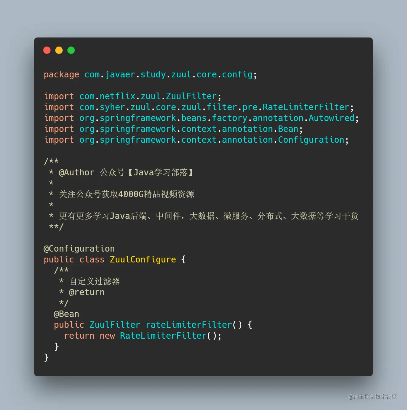 本文从什么是网关和为什么要使用网关引入SpringCloud Zuul,介绍了什么是Zuul,Zuul的使用场景。并且分析了Zuul的核心架构以及Zuul请求处理的生命周期。然后着重的讲解了Zuul的路由和过滤器这两个在任何网关中都十分重要的组件。本文旨在带领大家对Zuul有一个全局的认识。在日后学习其它网关技术的时候也能够融会贯通,学习起来能够事半功倍。