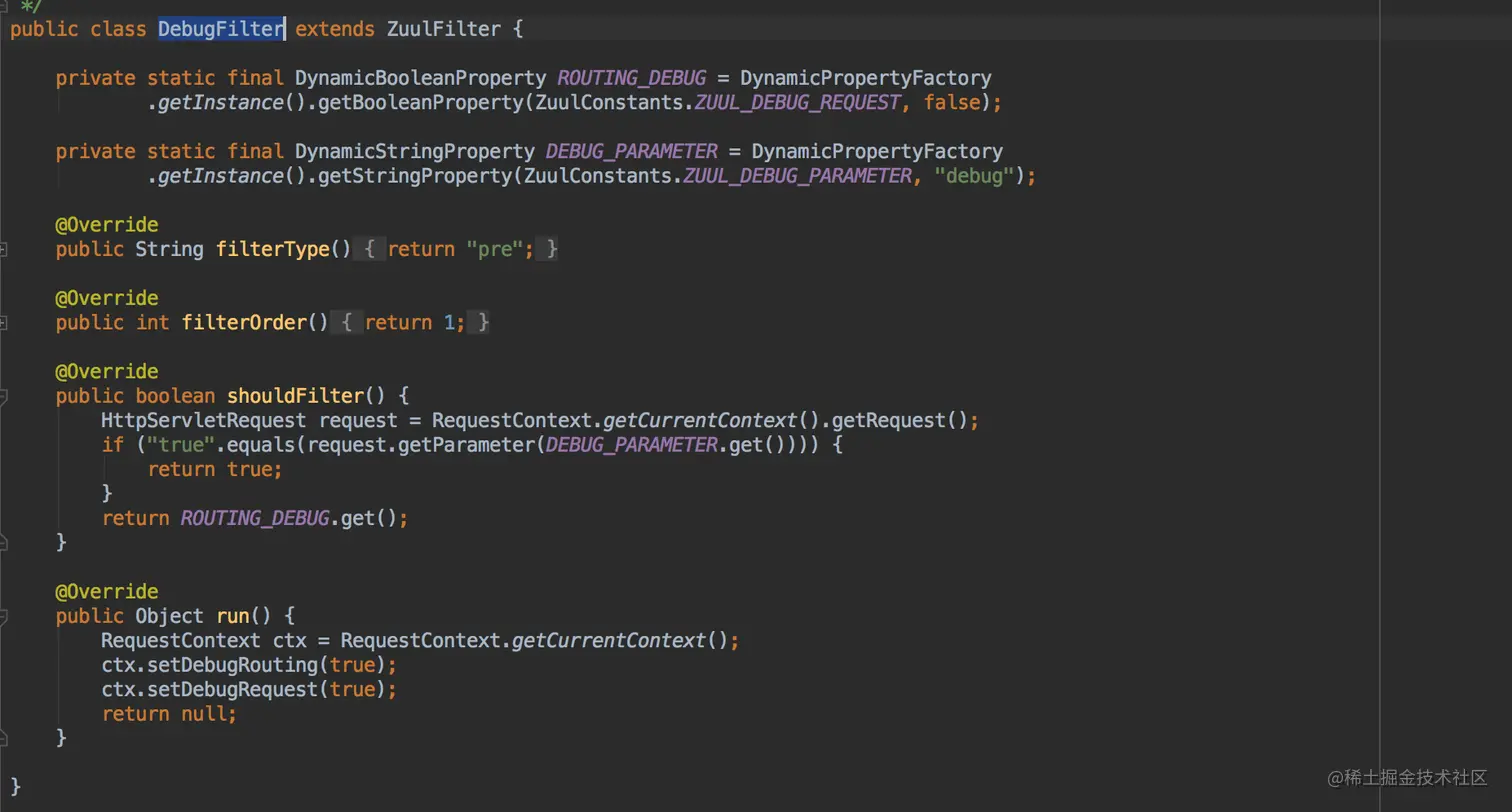 它的执行顺序为1,是第四个执行的过滤器,该过滤器会根据配置参数zuul.debug.request和请求中的debug参数来决定是否执行过滤器中的操作。